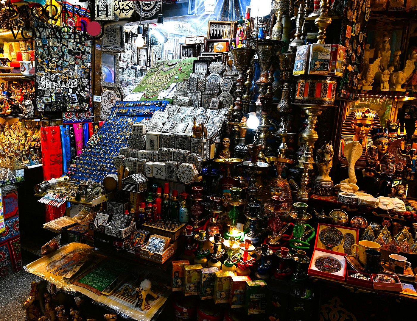 La journée se prolonge par une immersion sensorielle dans le légendaire Khan El-Khalili, le plus ancien et le plus célèbre souk du Caire. En déambulant dans ses ruelles animées, vous découvrez un univers authentique où se mêlent parfums d’épices, lanternes artisanales, bijoux traditionnels et étoffes colorées. Cette balade culturelle permet d’observer la vie locale et de ressentir l’âme vibrante de la ville.