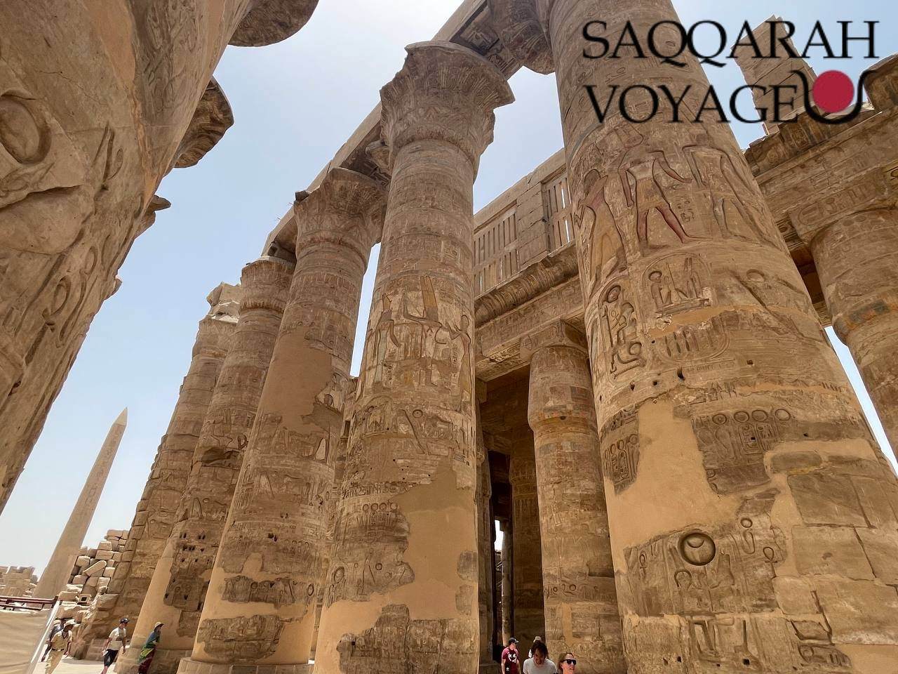 - Sur la rive est du Nil, votre guide francophone vous emmènera visiter le temple de Karnak, considéré comme le plus grand complexe avec sa salle hypostyle aux 134 colonnes, qui est dédié à la trinité de Louxor Amon, Nout, Khonsou.