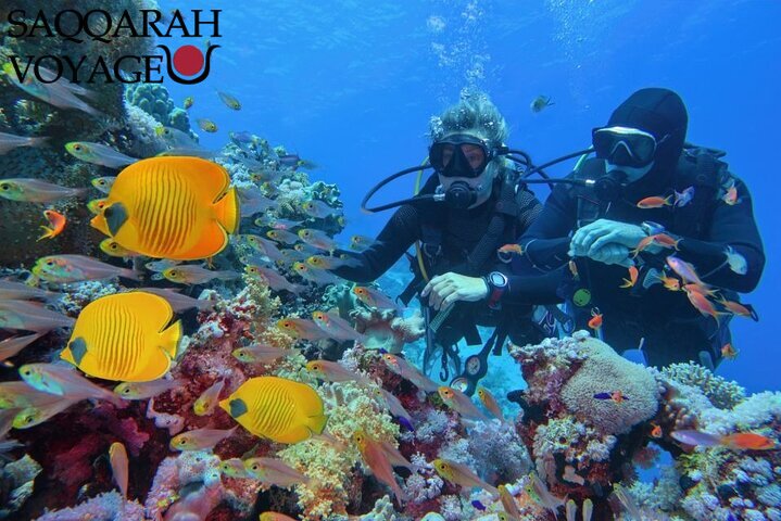 Encadré par des moniteurs professionnels, vous explorez les zones les plus fascinantes, apprenant à reconnaître les espèces et à naviguer en toute sécurité parmi les formations coralliennes. Ce moment permet de ressentir la connexion directe avec la mer, de flotter au-dessus des coraux et de se laisser porter par la beauté et la sérénité du parc. Les pauses photos et l’observation attentive des espèces marines enrichissent l’expérience, transformant cette première escale en souvenir mémorable et intime au cœur de la nature égyptienne.