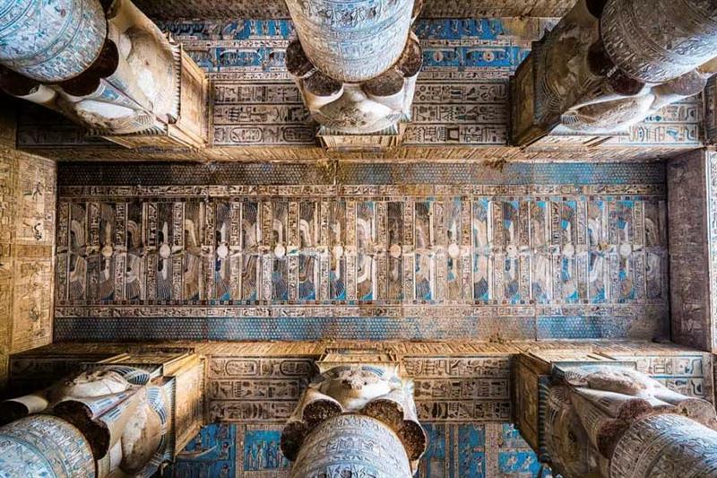 Lors de votre excursion Louxor Marsa Alam de 2 jours, avec Saqqarah voyage, vous visiterez le temple de la déesse Hathor, haut en couleur et pourrez contempler sur le plafond les splendides fresques peintes dans les tons bleus.