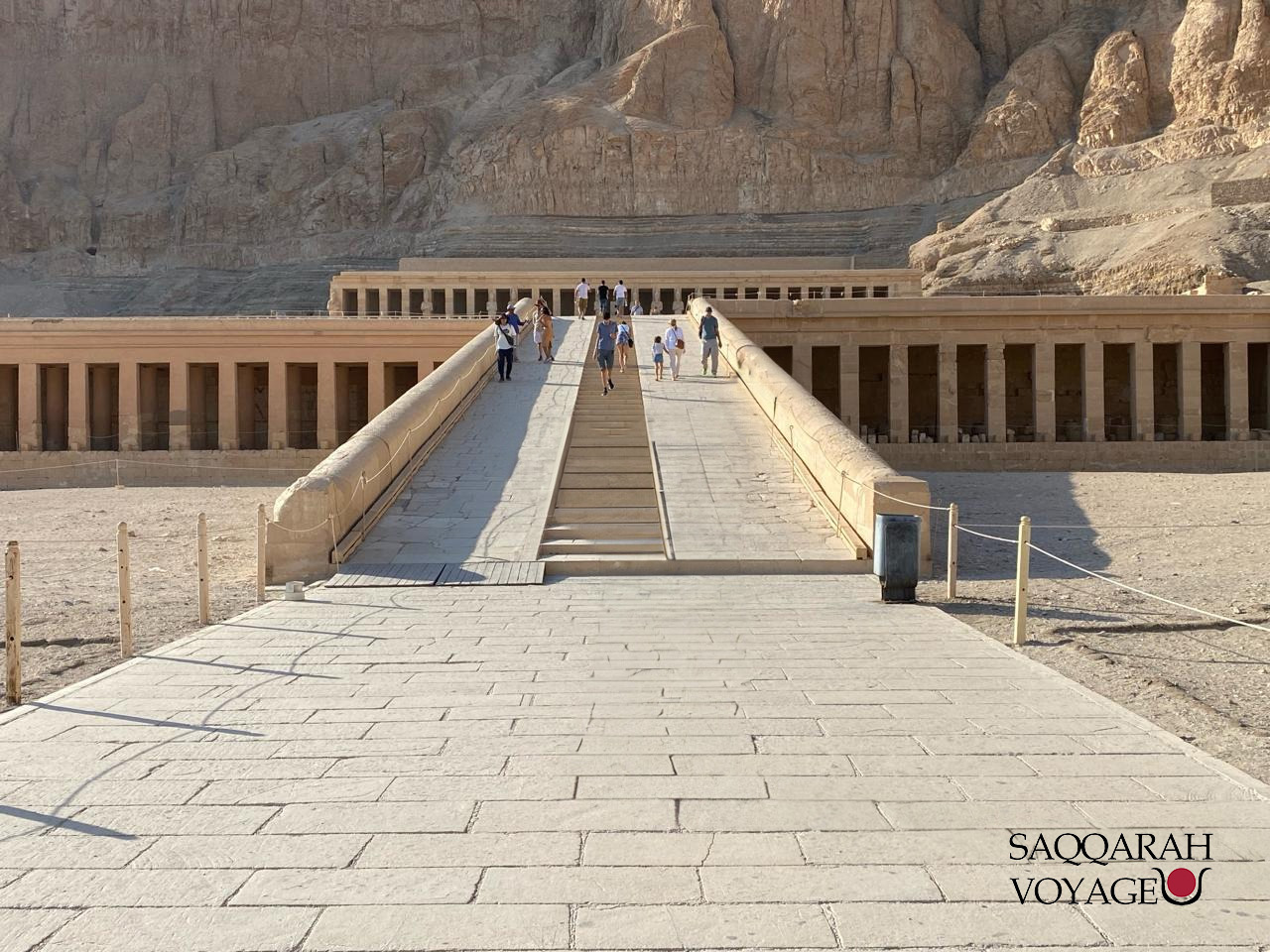 - Temple d’Hatchepsout: visite de l’impressionnant temple funéraire de la reine Hatchepsout de 18e dynastie, somptueusement aménagé, étagé sur trois niveaux.