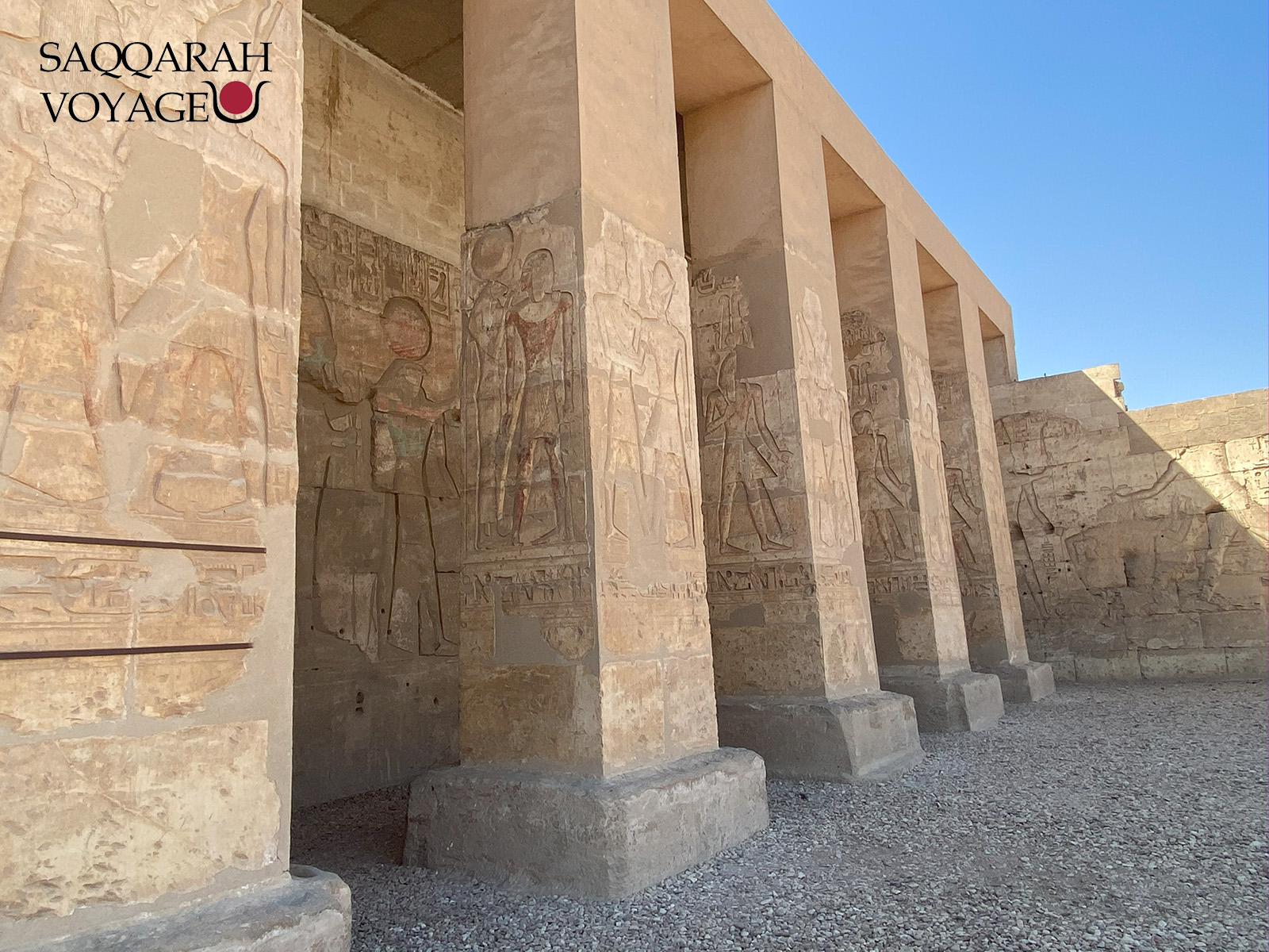 Saqqarah-voyage vous emmène pour une excursion de deux jours, premièrement au temple funéraire de Seti 1er et Ramsès II. A environ 600 km de Marsa Alam, le temple d’Abydos possède les reliefs les mieux conservés, comparés à d’autres temples égyptiens, et sont parmi les plus beaux de la période pharaonique de l’Egypte. Le temple a été construit en l’honneur des dieux Osiris, Horus, Amon, Re-Horakhty, de la déesse Isis et du roi Seti 1er.