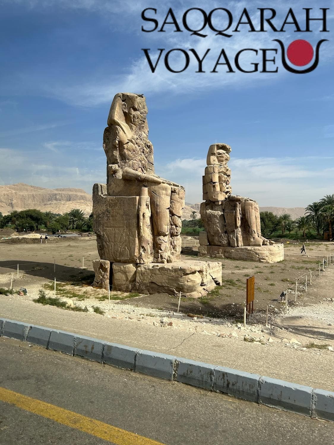 - Colosses de Memnon : Vous avez admiré ces statues monumentales qui témoignent de la grandeur de l’Égypte ancienne.