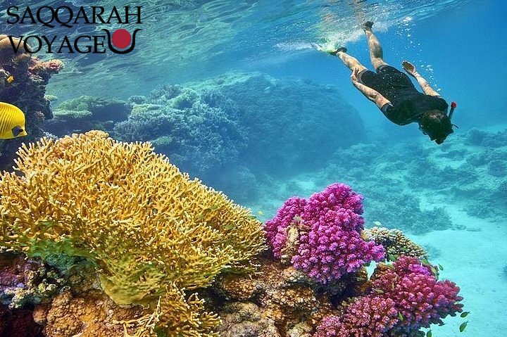 Jour 2 – Snorkeling en Mer Rouge : Exploration des récifs coralliens et observation des poissons multicolores, activité encadrée et adaptée aux enfants.