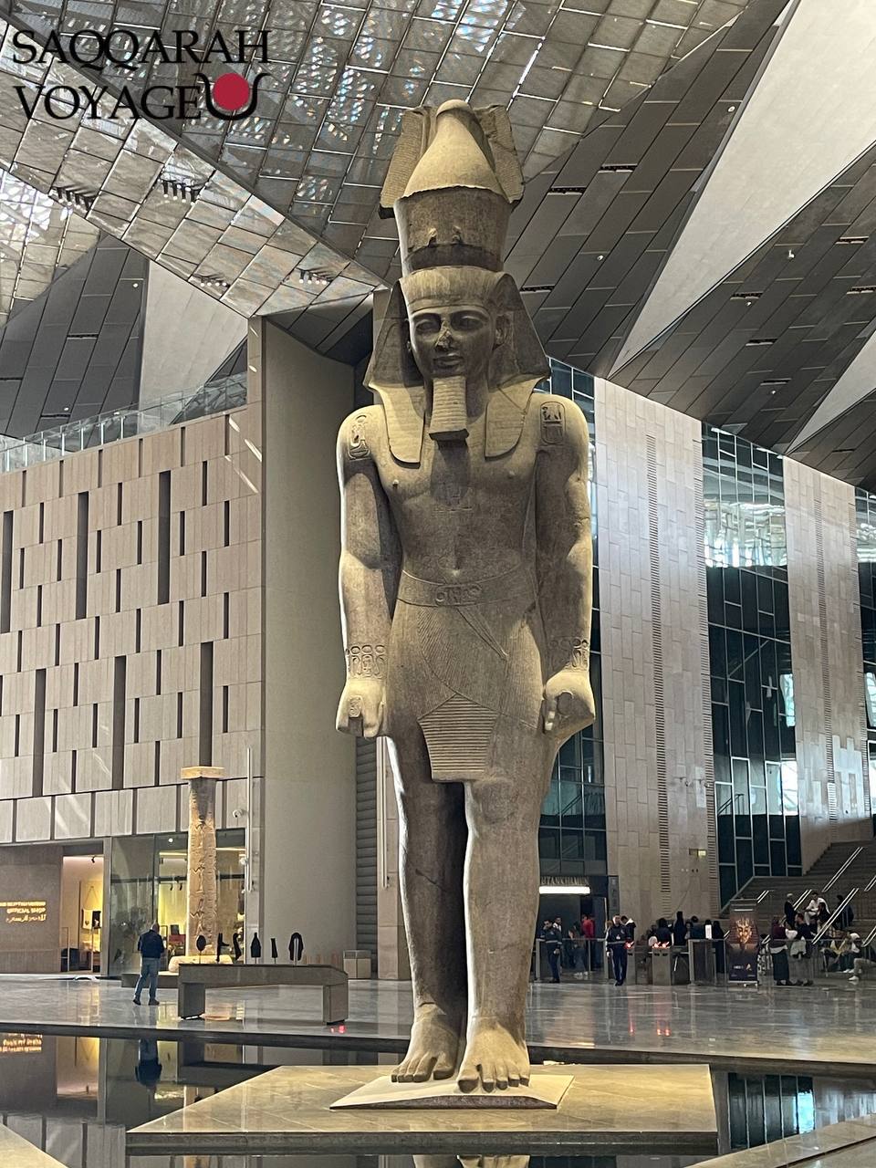 Après cette exploration fascinante, l’excursion se poursuit par une pause déjeuner, suivie d’une visite au spectaculaire Grand Musée Égyptien (GEM), le plus grand musée archéologique au monde. Vous y découvrirez des milliers d’artefacts, dont la monumentale statue de Ramsès II, présentés dans un cadre moderne et immersif.