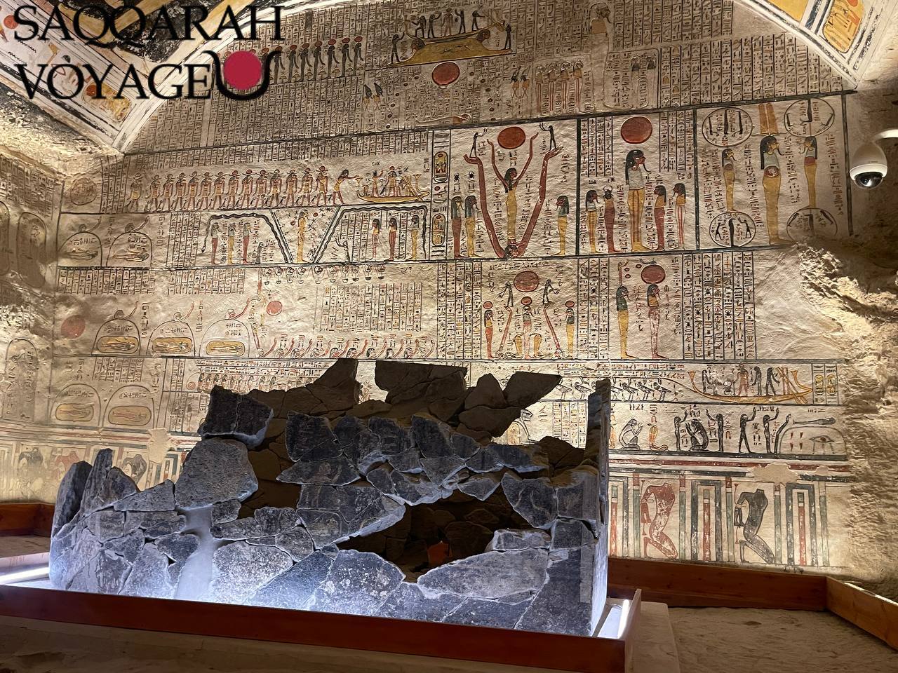 L’atmosphère silencieuse du site crée une expérience profondément émotive, renforcée par la lumière naturelle qui pénètre les couloirs millénaires. Le confort du transfert privé entre les différents points optimise le temps sur place. Cette immersion dans la nécropole royale constitue un moment fort, mêlant découverte archéologique, émotion et compréhension de la civilisation pharaonique.