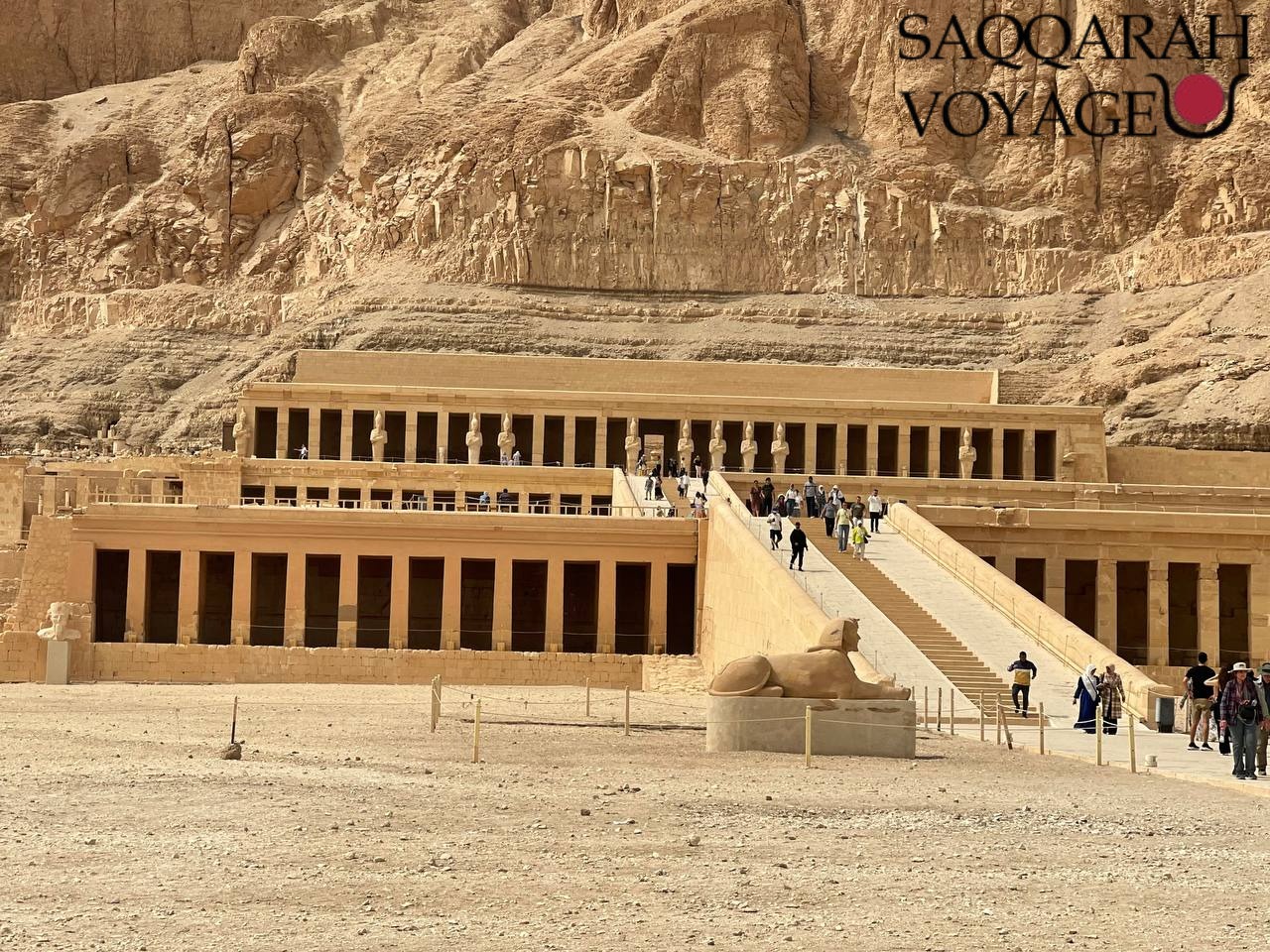 Ensuite, dirigez-vous vers le Temple d’Hatchepsout, un chef-d’œuvre architectural. Ce temple est particulièrement particulier pour plusieurs raisons :
