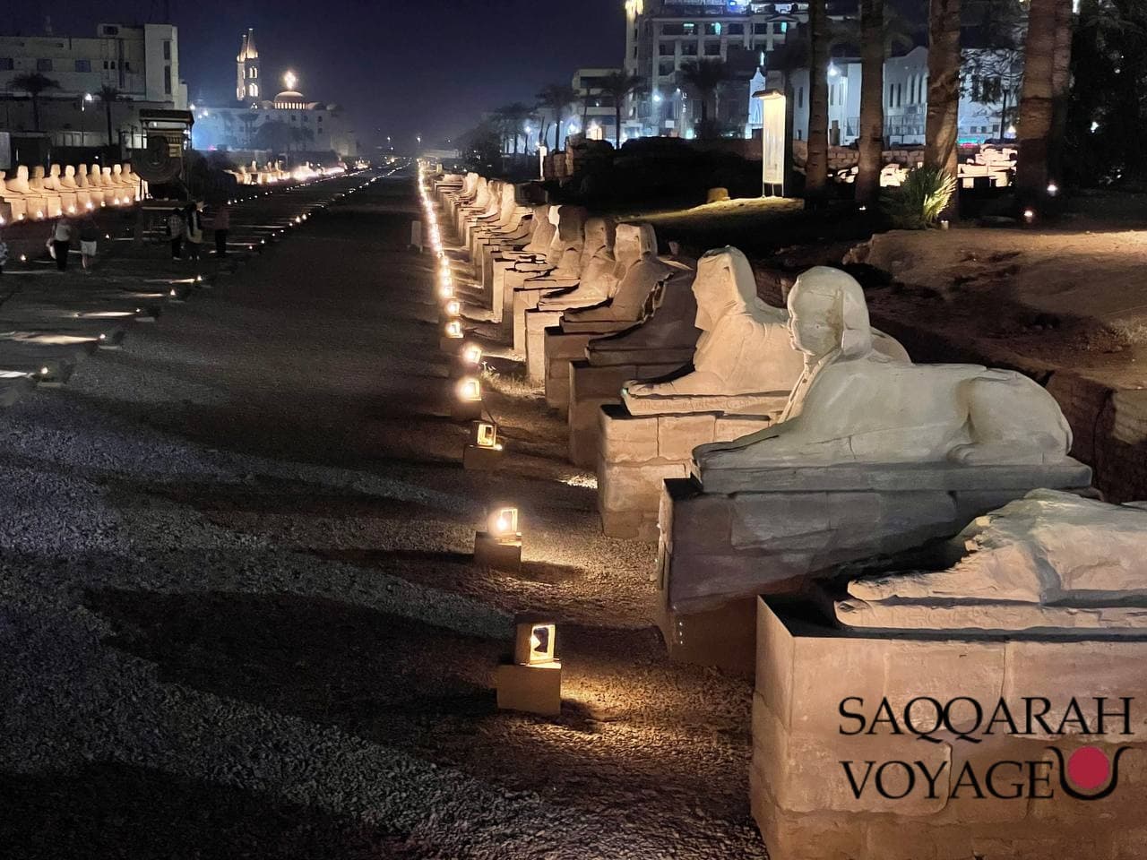 Terminez votre exploration par une promenade sur l’Avenue des Sphinx, qui relie les deux temples. Les statues de sphinx historiques jalonnent votre chemin, rappelant l’importance des processions qui se déroulaient autrefois ici.
